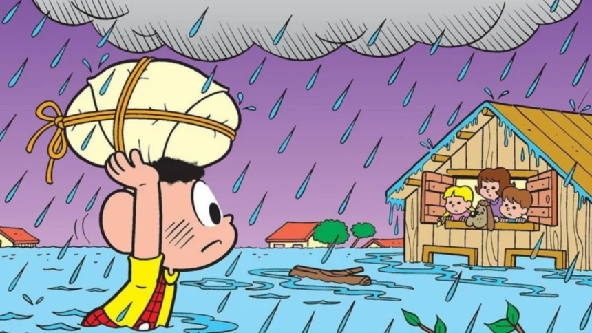 A Turma da Mônica divulgou através de suas redes sociais oficiais a imagem recriada de uma antiga tirinha de Maurício de Sousa, datada de 1983, em solidariedade às vítimas das enchentes no Rio Grande do Sul.